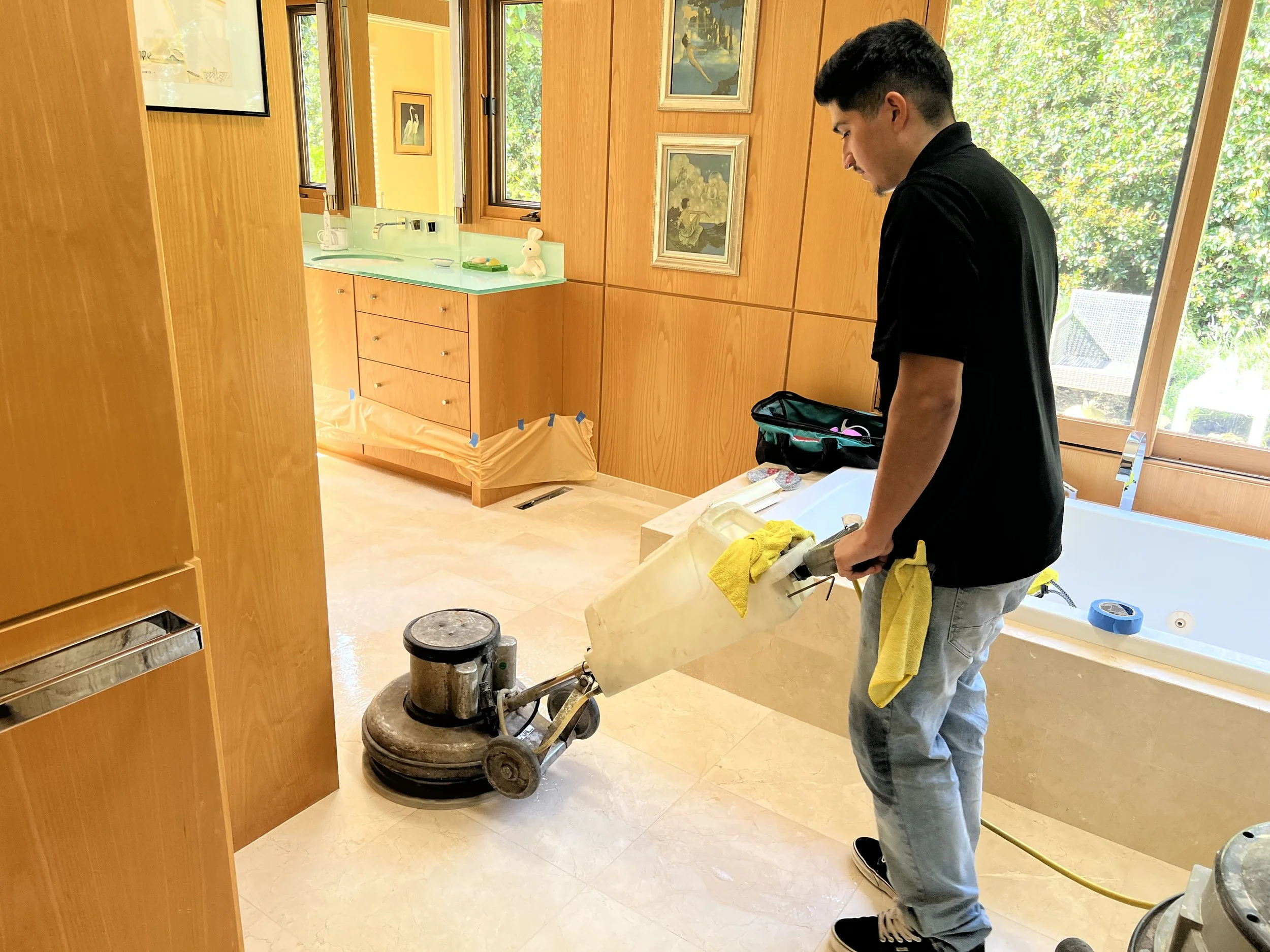 Our team is equipped with state of the art tile and grout cleaning machinery. Using specialized solutions and state of the art equipment we are able to eliminate dirt and grime from your tile, grout, and stone surfaces. Our process both cleans and sanitizes your surfaces.